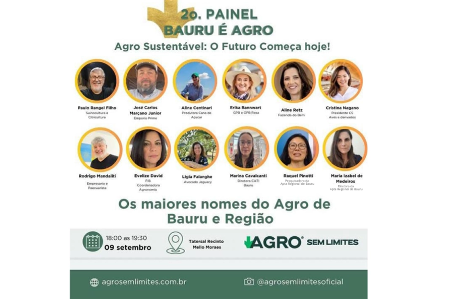Já no painel AGRO EM MOVIMENTO, do dia 12/09, a mediação será de Raquel Nakazato Pinotti nos painéis sobre Sucessão no Agro, Sustentabilidade e Avicultura em Foco.