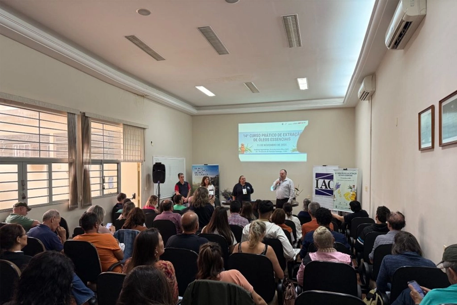O Instituto Agronômico (IAC-Apta), da Secretaria de Agricultura e Abastecimento do Estado de São Paulo, promoveu na última terça-feira (11) o 14º Curso Prático de Extração de Óleos Essenciais, reunindo cerca de 80 participantes de diferentes regiões do país, entre produtores rurais, pesquisadores, artesãos e profissionais da indústria, vindos de São Paulo, Bahia, Sergipe, Rio de Janeiro, Minas Gerais e Distrito Federal.