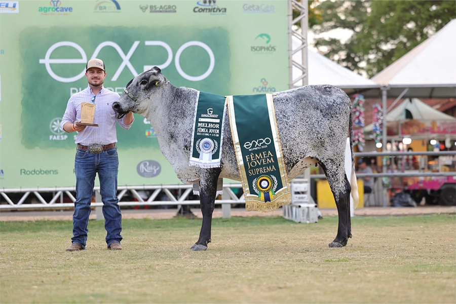 Um dos pontos altos desta edição da EXPO Rio Preto foi a estreia do título “Vaca Suprema”, premiação inédita que reuniu as quatro grandes campeãs da raça Girolando em uma disputa de altíssimo nível genético. A grande vencedora foi Pimenta FIV da FCB, da Fazenda Cosmorama, apresentada pelo expositor Gerson Nonato. Já na categoria jovem, o destaque ficou com a fêmea RBB Ramya Pearce FIV, da Estância Juluca, de Mendonça (SP), que conquistou o título de Suprema Jovem.