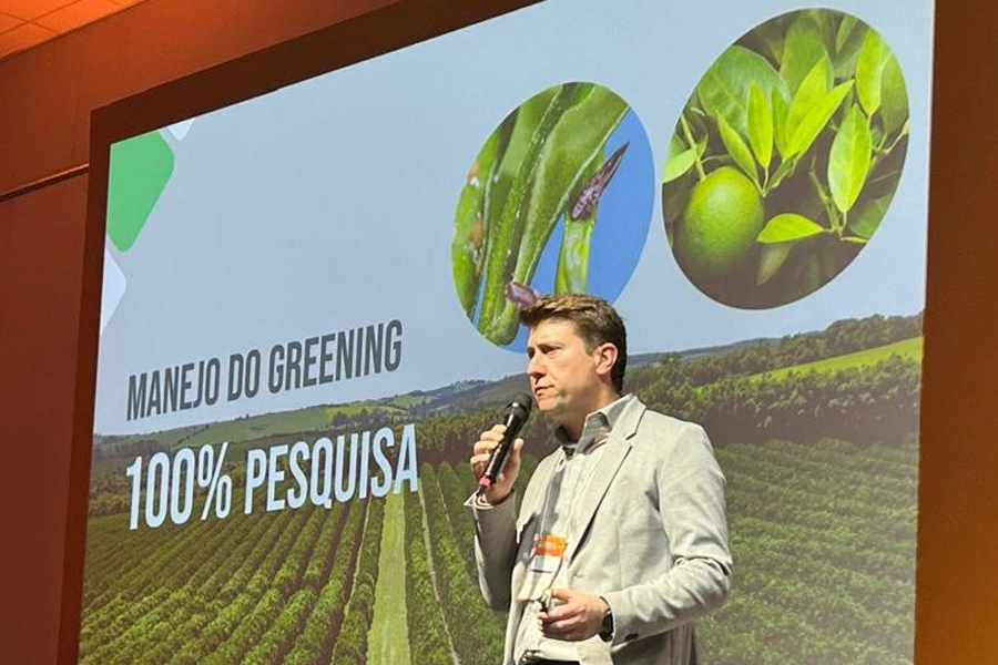 A participação do Fundecitrus contou com duas palestras técnicas. A primeira, realizada na segunda-feira (4), foi ministrada pelo pesquisador Franklin Behlau e teve como tema “Avanços da pesquisa no manejo e controle do greening”, mostrando as principais pesquisas que têm impulsionado a evolução do manejo da doença. “Cada medida aplicada no campo é resultado direto de estudos conduzidos por diversas instituições parceiras. A pesquisa tem sido essencial tanto para aperfeiçoar as práticas atuais quanto para desenvolver novas estratégias, como o controle do psilídeo, o tratamento de plantas doentes e o uso da biotecnologia”, explica Behlau.