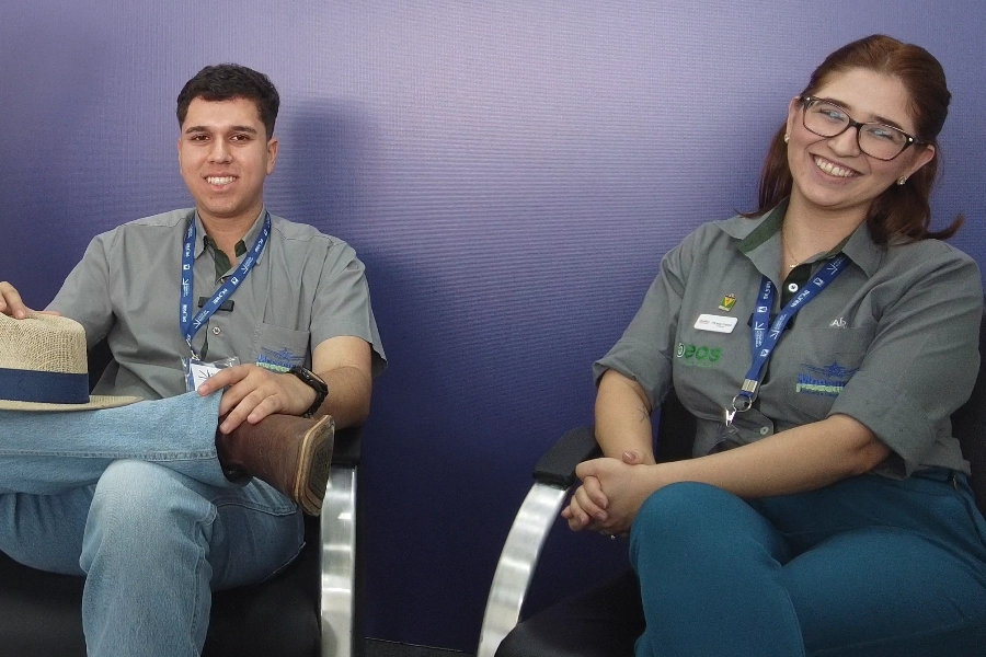 No estúdio do Jornal Campo Aberto, durante o Congresso da Aviação Agrícola 2025, realizado no Aeroporto Santo Antônio, em Cuiabá, o quadro Hora da Prosa recebeu Maíra Freire, advogada trabalhista, e João Silva, supervisor da Mossmann Academy, ambos do Grupo Mossmann.