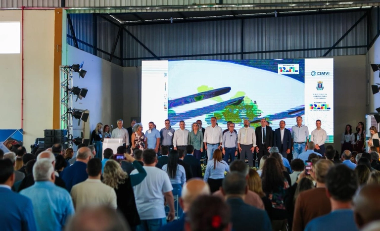 O ministro da Agricultura e Pecuária, Carlos Fávaro, participou nesta quarta-feira (24) da cerimônia de encerramento da terceira edição do Projeto ConSIM, realizada em Rio dos Cedros, Santa Catarina.