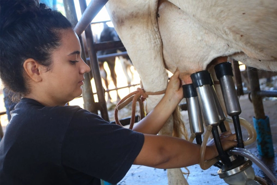 Em Cerqueira César, no interior paulista, a produtora Fernanda Torres da Silva ilustra na prática os resultados desse apoio. Atuando há cerca de dez anos na bovinocultura leiteira, ela acessou, em 2024, uma linha de crédito do FEAP e investiu R$ 25 mil na aquisição de uma ordenha mecânica completa, equipada com quatro conjuntos de teteiras, sistema de pulsação eletrônica e estrutura em inox.